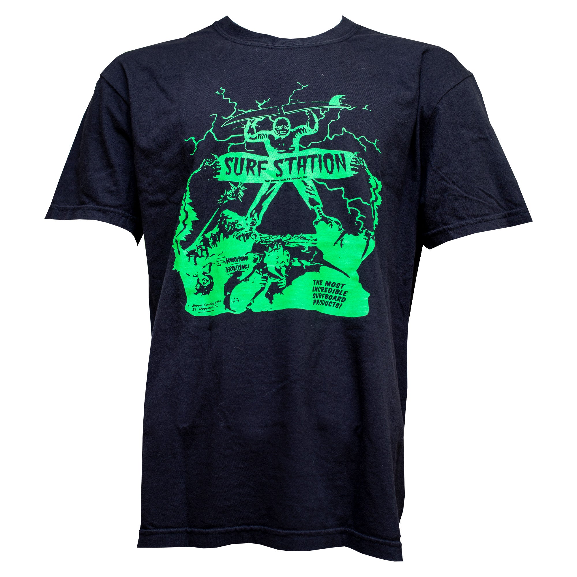 The Surf Station Slasher Film Men’s S/S T-Shirt is a classic Surf Station tee design brought back from the archives. This tee has a large, vibrant screenprint on the front and a plain back to balance the design.